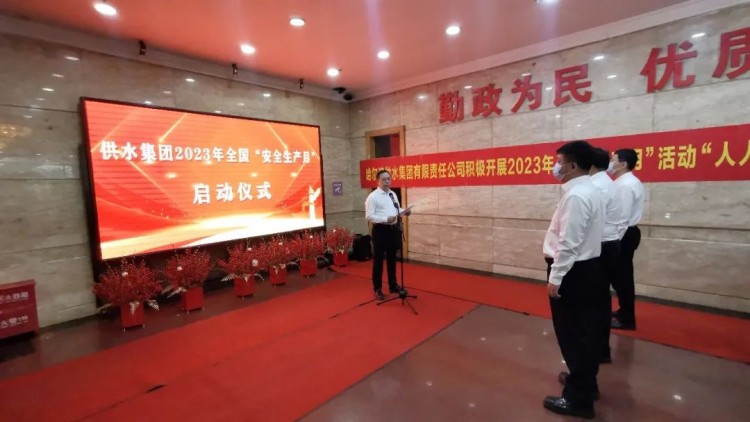 6月1日是2023年全国“安全生产月”活动的第一天,供水集团在本部办公楼举行了“安全生产月”活动启动仪式。集团公司领导班子、各部门主要负责人及相关工作人员,共60余人参加了启动仪式。