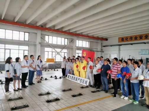 一是结合次氯酸钠改造,开展一次党日活动。7月5日上午,平房净水厂运行13年的加氯系统设备、设施拆除工作正式启动。在这具有里程碑意义的时刻,平房净水厂党支部组织开展了以“不忘初心强担当,牢记安全再启航”为主题的党日活动。优秀共产党员、加氯班班长郭宝宇在现场分享了13年来保证加氯安全运行的内心感受,并表示,次氯酸钠成功转换后,虽然身份变了,但安全责任不会减弱,会一如既往紧绷安全生产之弦,牢记初心和使命,在新的战场上继续谱写安全供水新篇章。全体党员在庄严的党旗下重温入党誓词,以特殊的方式见证加氯消毒系统正式退出历史舞台。
