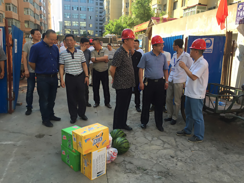 7月6日下午,集团公司董事长舒强冒着高温酷暑来到香坊营业分公司指导工作,并到幸福里小区施工现场勘查、慰问工作人员。(信息员:刘慧 党鑫)