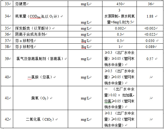 出厂水常规42项目指标 (2018年 10月)