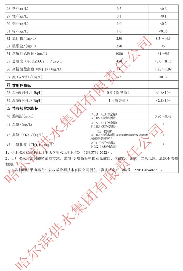 2023年4月出厂水常规43项目指标