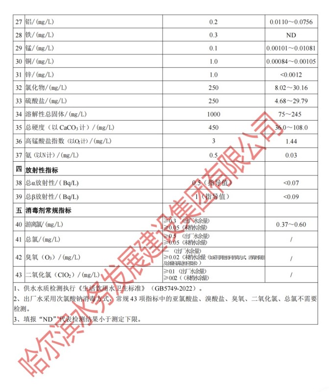 2023年12月出厂水常规43项目指标